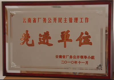 ![]() 2010年榮獲云南省廠務(wù)公開(kāi)先進(jìn)單位 |