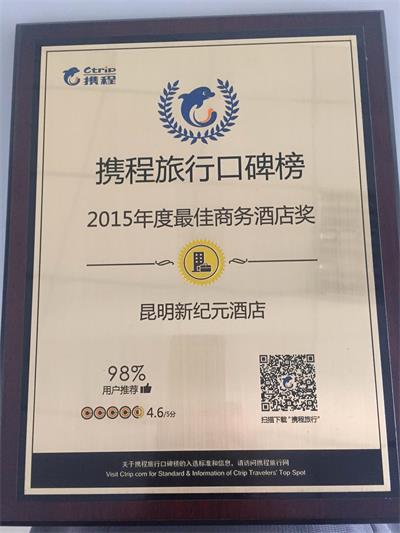![]() 攜程旅行口碑榜2015年度“最佳商務(wù)酒店” |